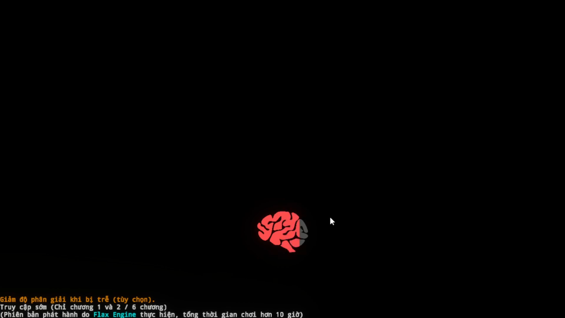 Now let's take a look at the UI/UX interface on the screen. In the lower left corner is a three-line text, line 1 is "Reduce resolution when lagging or stuttering", line 2 is "Early access includes 2 chapters out of 6 chapters with a total playtime of 2 hours", line 3 is "Bnar full release will be made on Flax Engine and have a total playtime of more than 10 hours". In the lower right corner is an option menu frame including 5 buttons arranged from top to bottom: Play button, Option button, Credit button, pykatellar.com button (access the home page), Quit button. Above the menu frame is the bloody banner logo seen on the floor as mentioned.