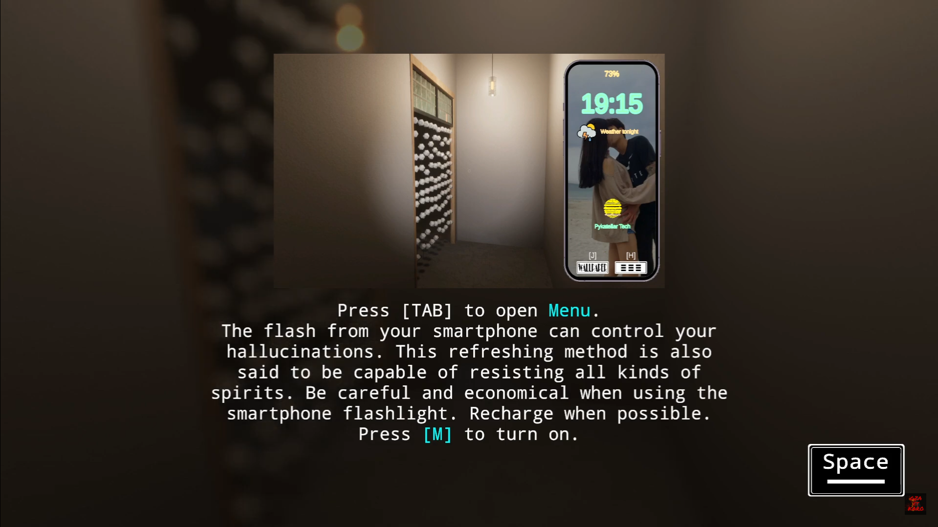 It's great, I understand and press the space bar to continue, I immediately see posters or messages on the wall, this is an interactive item, the two I see cannot be saved. I try to turn on the phone and it is true that there is a light but the phone unexpectedly may also be out of battery so I turn it off and the menu tab opens I see a message from my husband saying to visit the house and take a bath and eat cake, because I don't remember anything, I have amnesia and just got out of the hospital. The house is like in an apartment. There are only two people texting on the phone, honey and a stranger, I don't understand anything just look. The stranger said don't touch her things or else be careful, it seems like she is also a family member?!