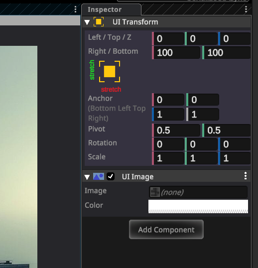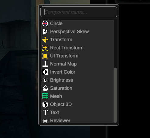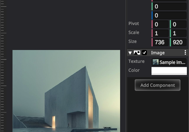 - Image: this is the component that contains the image passed in and will be processed through the components below added after it. It will look like Image in Unity.