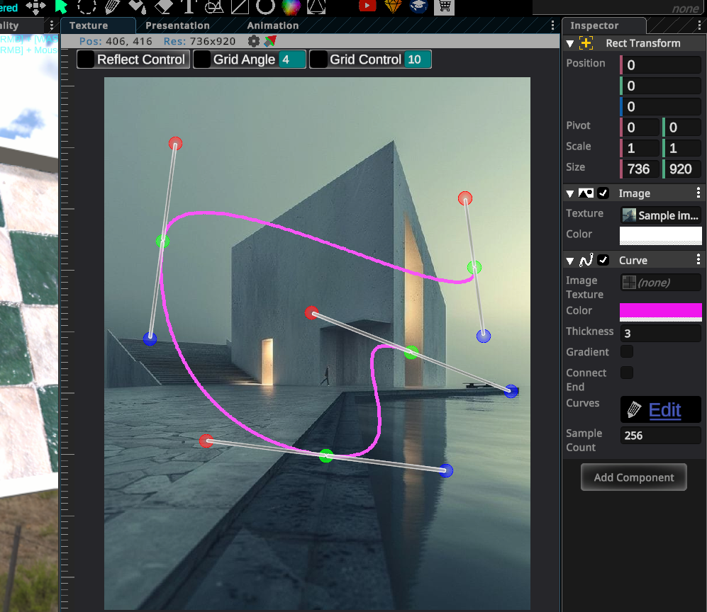 - Line and Curve: used to draw straight and curved lines using the Bezier Splines algorithm with control points and handles that can be dragged and dropped for editing.