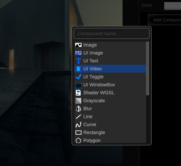 - UI Image, UI Text, UI Video... are components that display objects for presentations and slideshows.