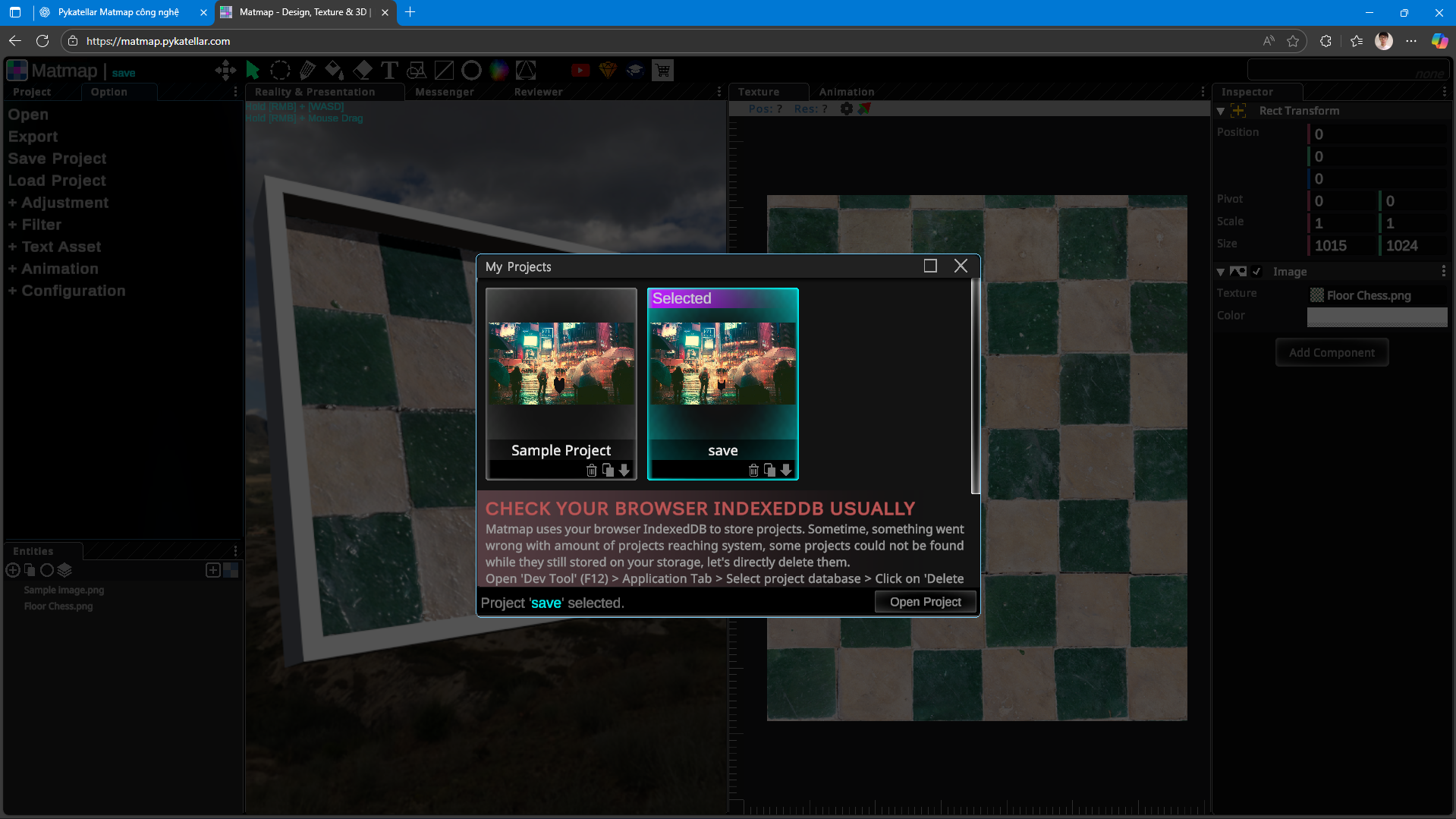 6. Support save load project, can save project directly in the browser's IndexedDB or download and store on the computer to share with friends, colleagues or partners.